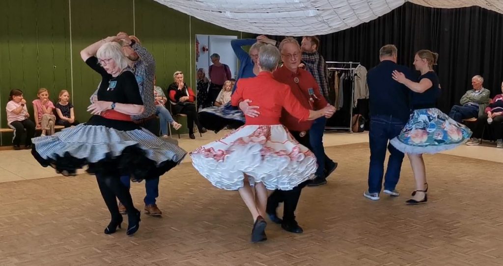 Square Dance ist extrem kommunikativ. Warum? Für einen Square werden immer 8 Tänzer ( 4 Paare) benötigt. Diese Paare bleiben aber nicht über den ganzen Tipp (ein Tanz) konstant, sondern sind einem ständigen Wechsel unterworfen. Man tanzt also im Verlauf eines Tipps ziemlich garantiert mehrfach mit jedem im Square und lernt so alle seine Tanzpartner kennen. Da im Laufe eines Abends auch die Zusammensetzung der Paare in den Squares immer wieder wechselt, hat man am Ende einer Veranstaltung eigentlich immer mit einer zweistelligen Anzahl verschiedener Partner getanzt und viele neue Leute kennengelernt.